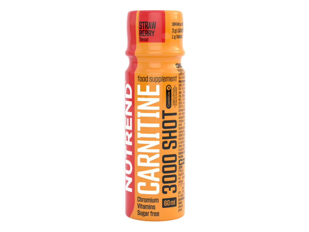 CARNITINE 3000 SHOT příchuť jahoda: voda, L-karnitin, taurin, regulátor kyselosti kyselina citronová, kofein, mléčnan chromitý, extrakt zeleného čaje (50 % polyfenolů), konzervanty sorban draselný a benzoan sodný, nikotinamid (vitamín B3), sladidlo acesulfam K, aroma, sladidlo sukralóza, kalcium D-pantotenát (vitamín B5), sladidlo steviol-glykosidy, pyridoxin hydrochlorid (vitamín B6), thiamin hydrochlorid (vitamín B1), barvivo E 122 – může nepříznivě ovlivňovat činnost a pozornost dětí.